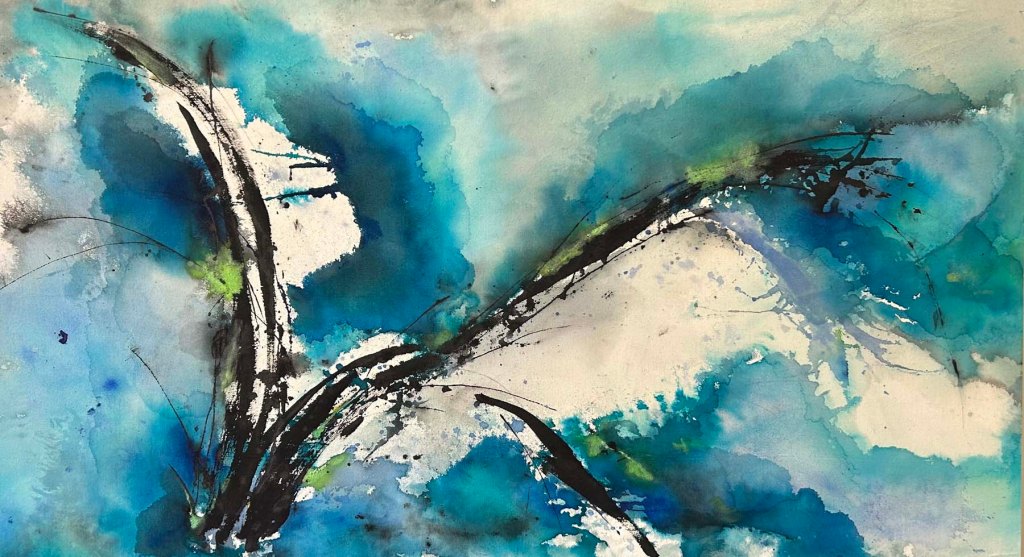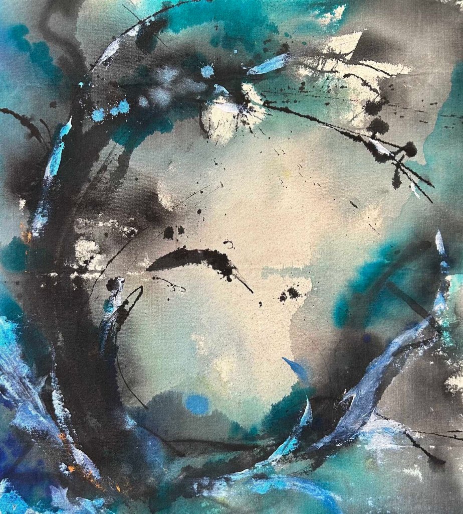 Into the Blue Mixed Media on Raw Canvas 30″ x 48″ The Weight of Blue Mixed Media on Raw Canvas 36″ x 36″Motion Mixed Media on Raw Canvas 30″ x 54Ink Holds The Void Mixed Media on Raw Canvas 28″ x 28″Held Breath Mixed Media on Raw Canvas 26″ x 24″Escaping Pressure Mixed Media on Raw Canvas 50″ x 28″Moment of Impact Mixed Media on Raw Canvas 54″ x 42″